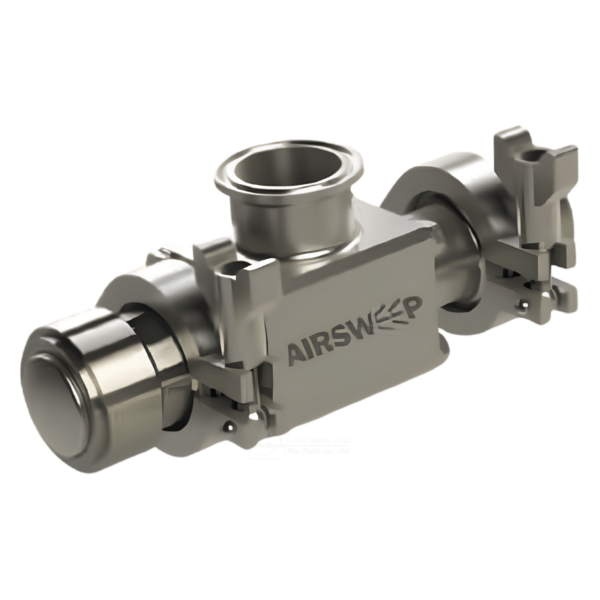 หัวฉีดนอซเซิล Airsweep® – Model USDA-135 แต่ละหัวจะพ่นลม (Compressed Air) หรือก๊าซเฉื่อย (Inert Gas) แรงดันสูง ปริมาณมาก 360 องศาไปตามผนังด้านในของ Process Equipment หรือถัง Vessels เพื่อทำลายแรงเสียดทาน (Breaking Friction) เพื่อยกและกวาดวัสดุที่อุดตันหรือติดในถังกลับเข้าสู่กระแสการไหล (Flow Stream) ปกติ การออกแบบที่ได้รับการจดสิทธิบัตรของหัว Nozzle ช่วยให้มั่นใจได้ว่าหัวฉีดจะมีการปิดผนึกทันทีหลังจากพ่นลมแต่ละพัลส์ วัสดุจะได้ไม่เข้าไปติดในหัว (Eliminate Material Feedback) การส่งพัลส์เป็นจังหวะตามยูนิต Airsweep® ที่ได้รับการวางตำแหน่งอย่างมีกลยุทธ์ ช่วยกระตุ้นการไหลของวัสดุจำนวนมาก (Bulk Material) เพื่อสร้างการไหลแบบ First-In, First-Out (FIFO) Controlled Flow